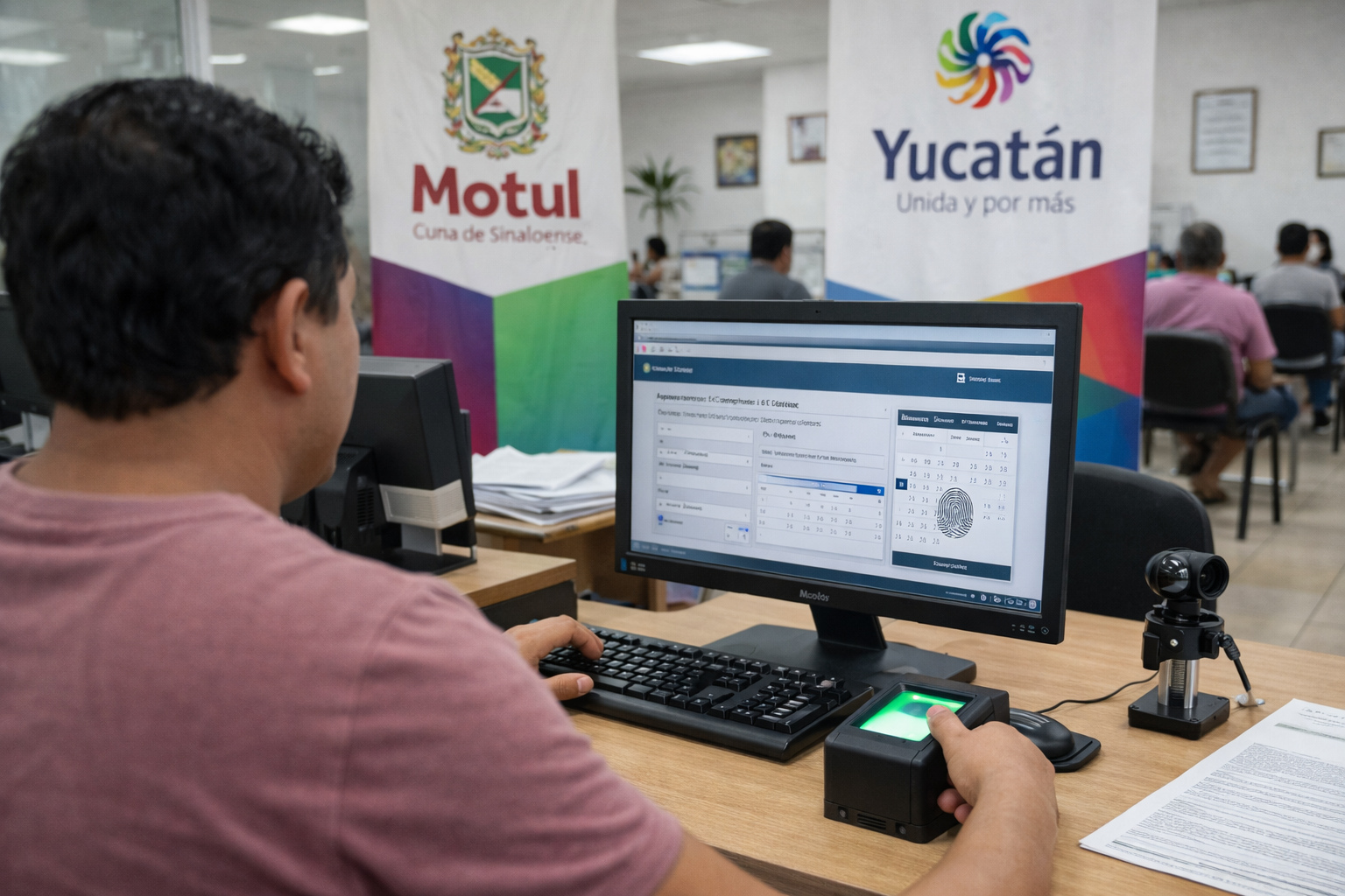 Registro de datos biométricos para la CURP en Zacatecas con escaneo de huellas y iris.